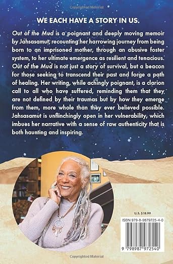 Out of the mud is a poignant and deeply moving memoir by Jahsasamut recounting her harrowing journey from being born to an imprisoned mother, through an abusive Foster system, to ultimate emergence as resilient and tenacious.